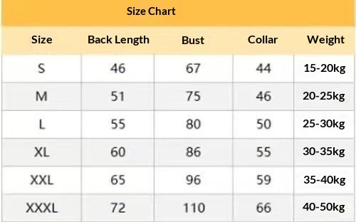 Size: S [fits 15–20 kg], M [fits 20–25 kg], L [fits 25–30 kg], XL [fits 30–35 kg], 2XL [fits 35–40 kg], 3XL [fits 40–50 kg]